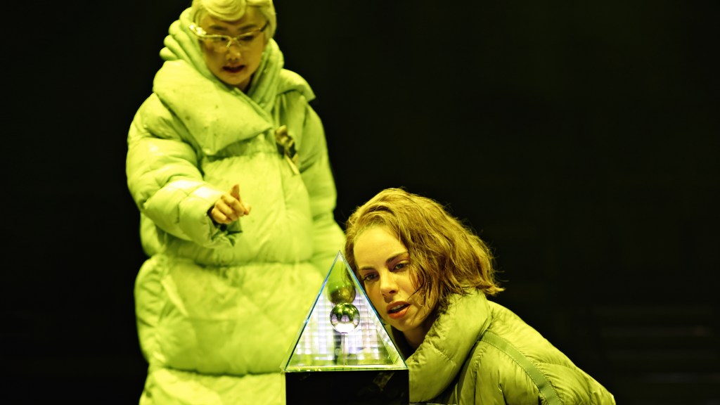 In the final scene, set in 2050’s Hamstead, the Chinese guest introduces May and Amy to a new source of power in the form of a glowing pyramid, small enough to rest on the coffee table in the middle of the frigid room.