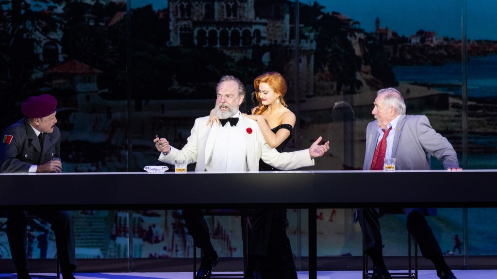 We finally meet the President towards the end of Act I. But Act II belongs to him. The State Funeral is done. He’s now holidaying in Portugal with his mistress. He gets progressively more and more drunk as he regales the young lady with thoughts on all manner of subjects, including that his country is too small for him and he wishes he was born in a bigger one…