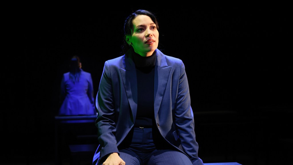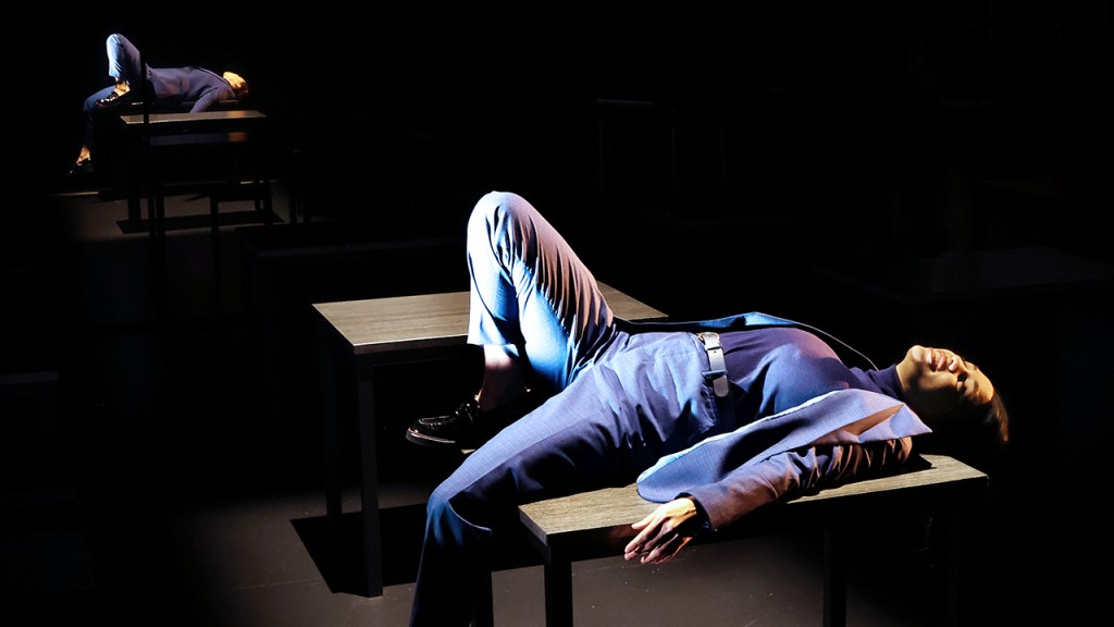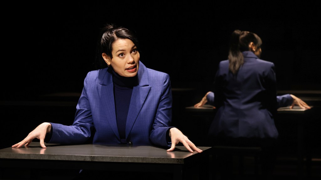 Văn-Davies delivers a powerhouse performance. Pacing between the desks as she tells her story. Sitting when the narrative requires some breathing space. Climbing onto a table and exulting her position when emboldened to do so. Embodying each of the side-characters she inhabits.