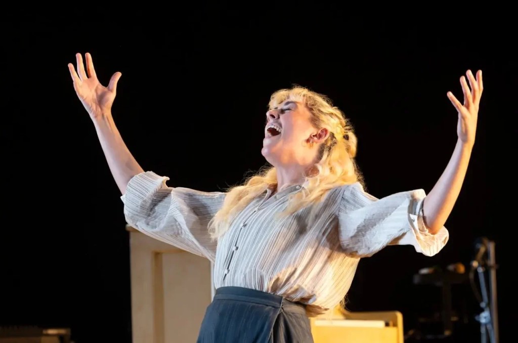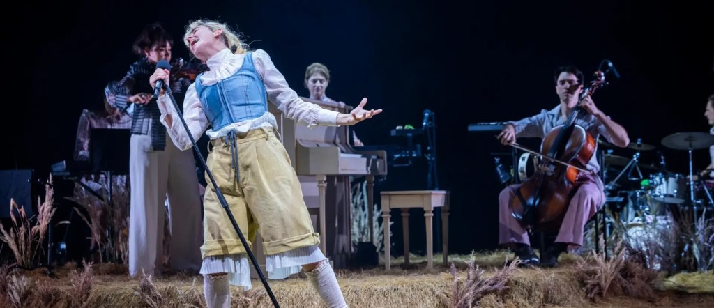Re-imagined as a pub-rock chick, in corsets and bloomers, Gare’s Sybylla is frenetic and manic and terrific. She sings, she dances, she plays piano and the electric guitar. She burns up the stage with every turn of her booted heel and every twist of her sharp tongue.